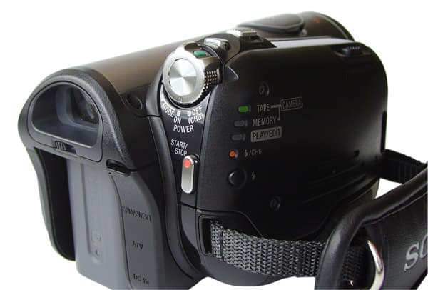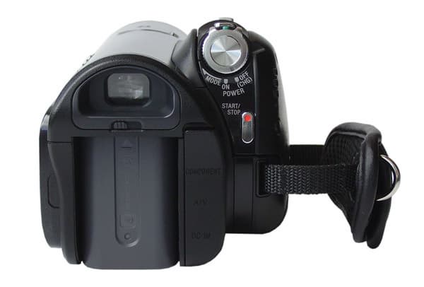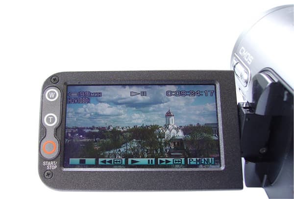 Расположение органов управления стандартно для всех типов бытовых камер, кнопки PHOTO и START/STOP довольно чувствительны к нажатию. На задней части камеры находится пластмассовая заглушка, скрывающая разъемы для подключения аналоговых кабелей и блока питания. В тестируемом экземпляре отсутствует аналоговый вход, причина этому, думается, понятна многим.