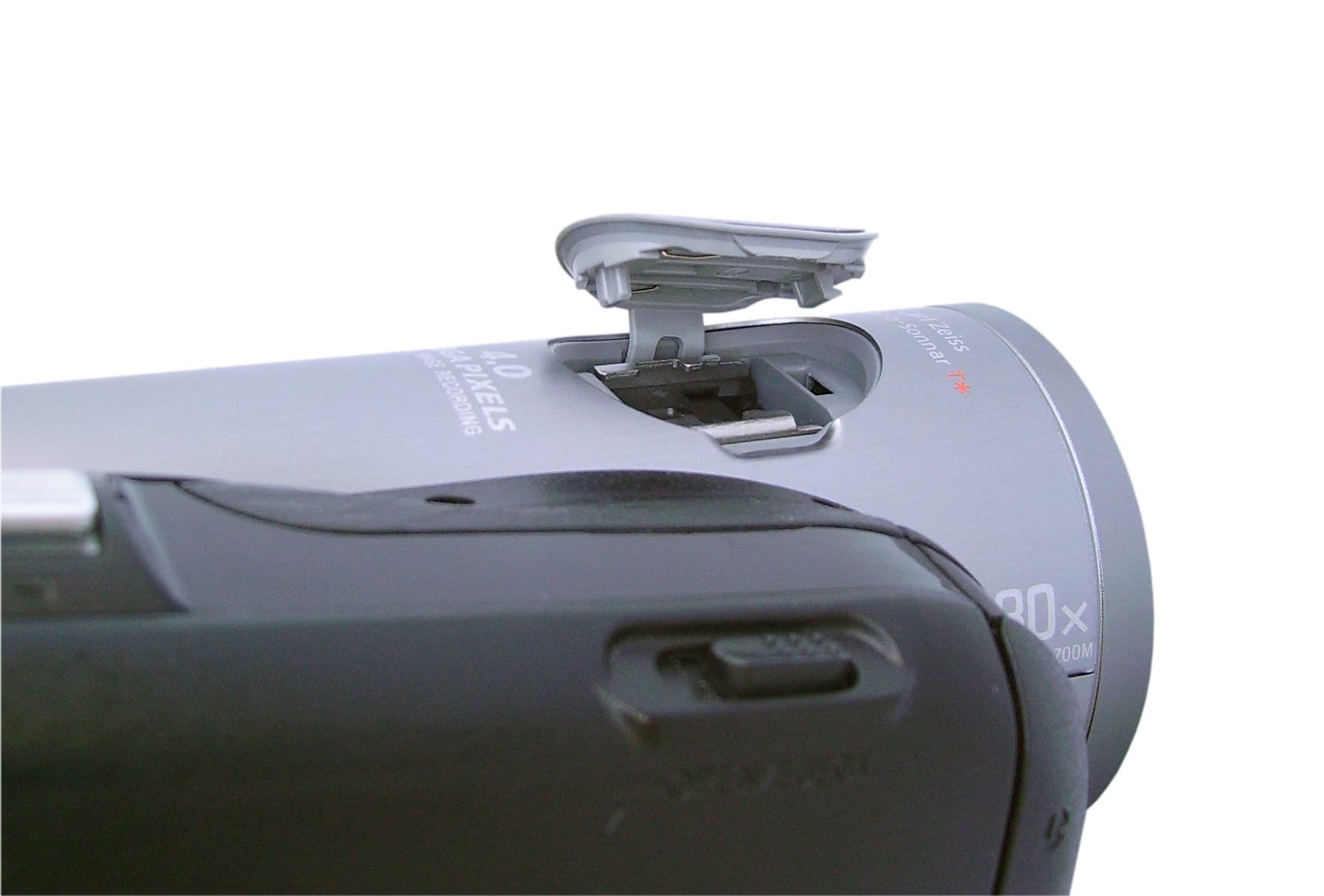 В данной модели реализована верхняя загрузка кассеты. Благодаря этому работа с камерой на штативе не приносит неудобств, как при работе с предыдущей моделью HC1.
