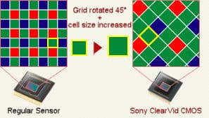 Камера имеет прогрессивную 2 мегапиксельную матрицу размером 1/3" ClearVid (где каждый красный и синий фотодиод окружен шестью зелеными, благодаря чему увеличивается светочувствительность и снижается шум пикселя), которая работает в паре с усовершенствованным процессором обработки изображений Enhanced Imaging Processor.