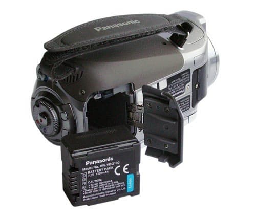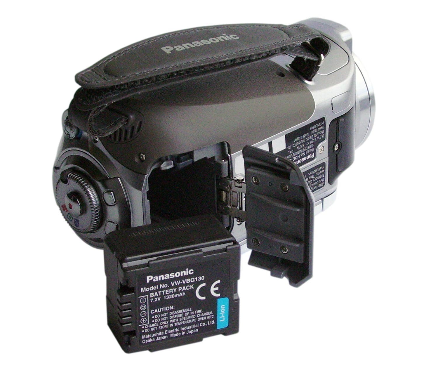 Полюбуйтесь, как тщательно спрятан аккумулятор. Поставляемый с камерой литиево-ионный элемент питания Panasonic VW-VBG130 имеет емкость 1320 мАч, чего хватает приблизительно на 80 минут работы. Очень жаль, но аккумулятор можно зарядить только одним способом: вынув его из камеры и вставив в прилагаемое зарядное устройство. Кстати, если в этом случае продолжить работу с камерой, подключив ее к этому же блоку питания через прилагаемый шнур-переходник, то зарядка прекратится (индикатор зарядки погаснет): агрегат не способен одновременно заряжать аккумулятор и питать камеру.