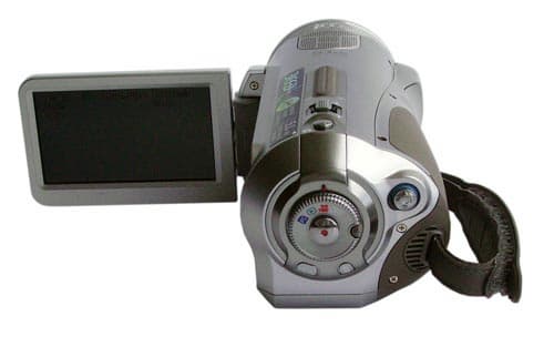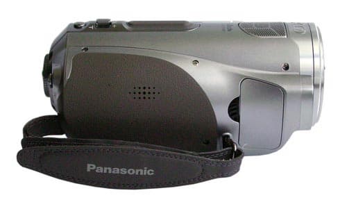 Объектив защищен автоматически открывающимися шторками, сбоку от него расположена лампа вспышки. Несмотря на то, что 5.1-канальный микрофон как будто "смотрит" вверх, в камере по-прежнему присутствует оригинальный режим "звукового зума" (см. Обзор видеокамеры Panasonic NV-GS500).