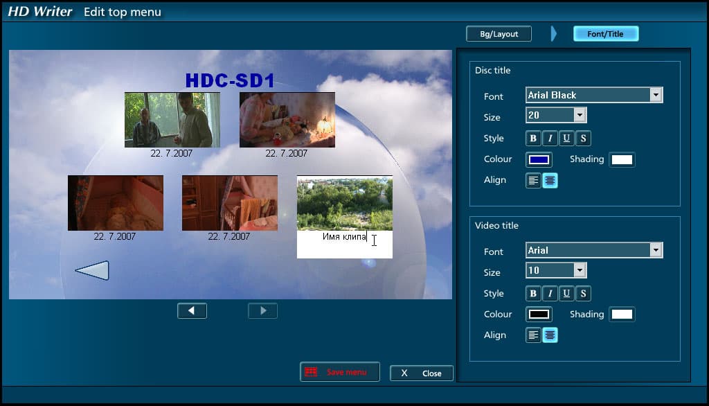 Незамысловатая работа над оформлением диска состоит из выбора фона, способа расположения иконок сцен, и изменения текстовых надписей.