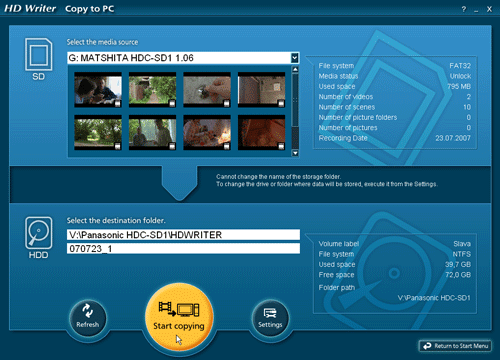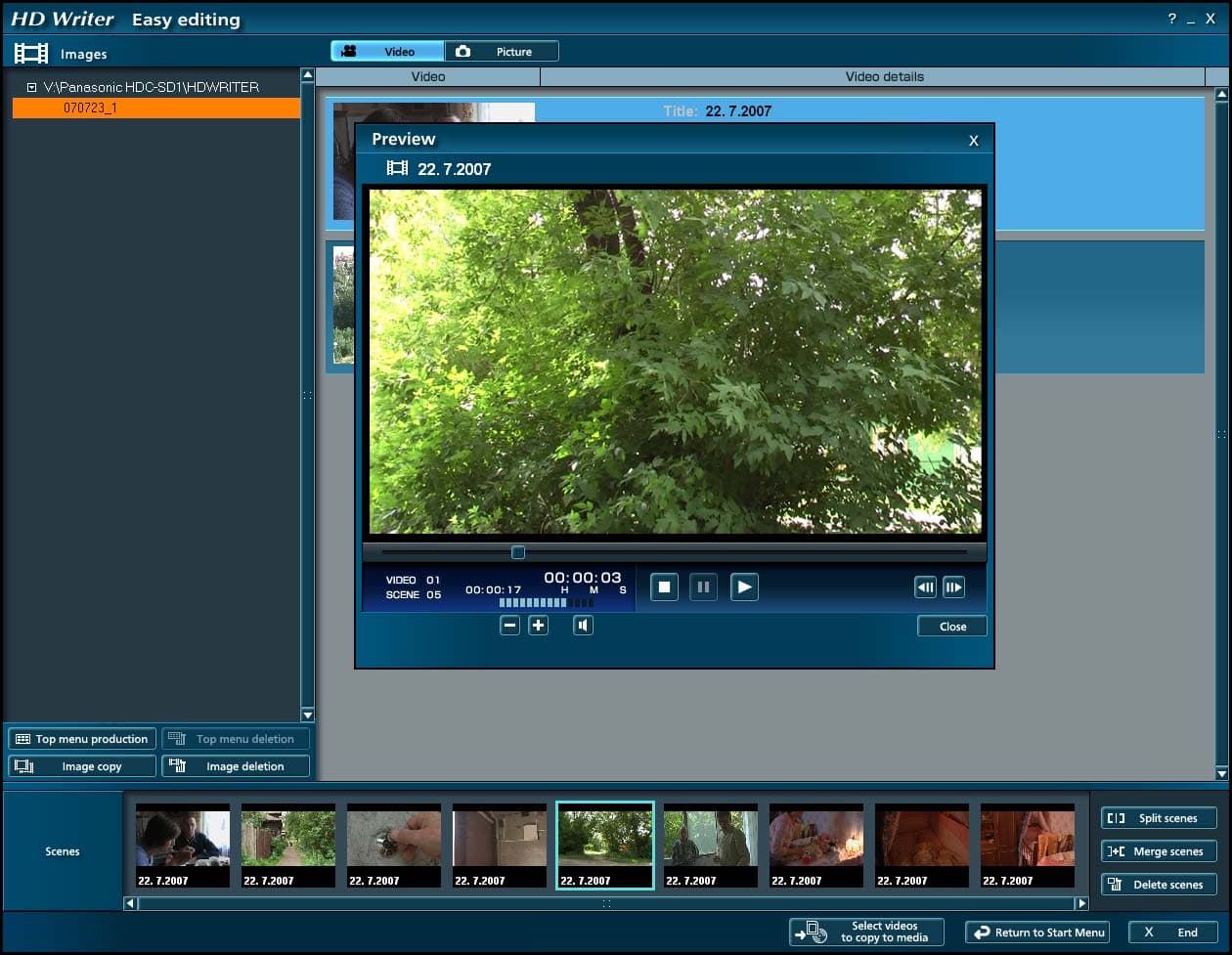Но вернемся к прилагаемому к камере программному обеспечению под названием HD Writer Ver1.0E for SD1. Данный пакет разработка компании Matsushita Electric Industrial Co., Ltd., и датируется она октябрем 2006 года, когда формату AVCHD только-только "стукнуло" полгодика с момента рождения.