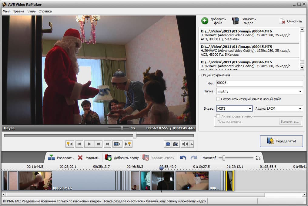 Обе предыдущие серии тестов так или иначе связаны с одним важнейшим фактором: довольно большой задержкой на процессорную обработку материала. Очевидно, что, как мы ни меняли расположение файлов, именно из-за этой задержки нам не удалось увидеть каких-то значительных различий. Однако при работе с видео далеко не каждый прибегает к полному перекодированию материала (некоторые особо упёртые пользователи и вовсе считают перекодирование злом, сравнимым с утратой своих драгоценных съёмок). Да, так они и поступают: всего лишь создают простейшую «нарезку», склеивая ролики в один файл в прямопоточном режиме. К сожалению (счастью?), серьёзные монтажные программы не умеют работать с видео без полного пересчёта. А потому для склейки файлов без их пересчёта используются специальные программы, скорее утилиты, которые гарантированно не трогают видео никакими перекодировками. Всё, что делают эти софтинки — всего лишь переупаковывают видео из одного контейнера в другой. Такая операция занимает ничтожно малое время даже на медленных машинах с медленными дисками, ведь процессор, по сути, занимается простым копированием данных из одного файла в другой. И всё же технический интерес заставляет нас проделать несколько тестов в описанном режиме прямопоточного копирования. Для этого мы воспользуемся программой AVS Video ReMaker, в которую загрузим два десятка AVCHD файлов общим объёмом 10 гигабайт. Результирующий файл станет записываться, естественно, на другой диск.