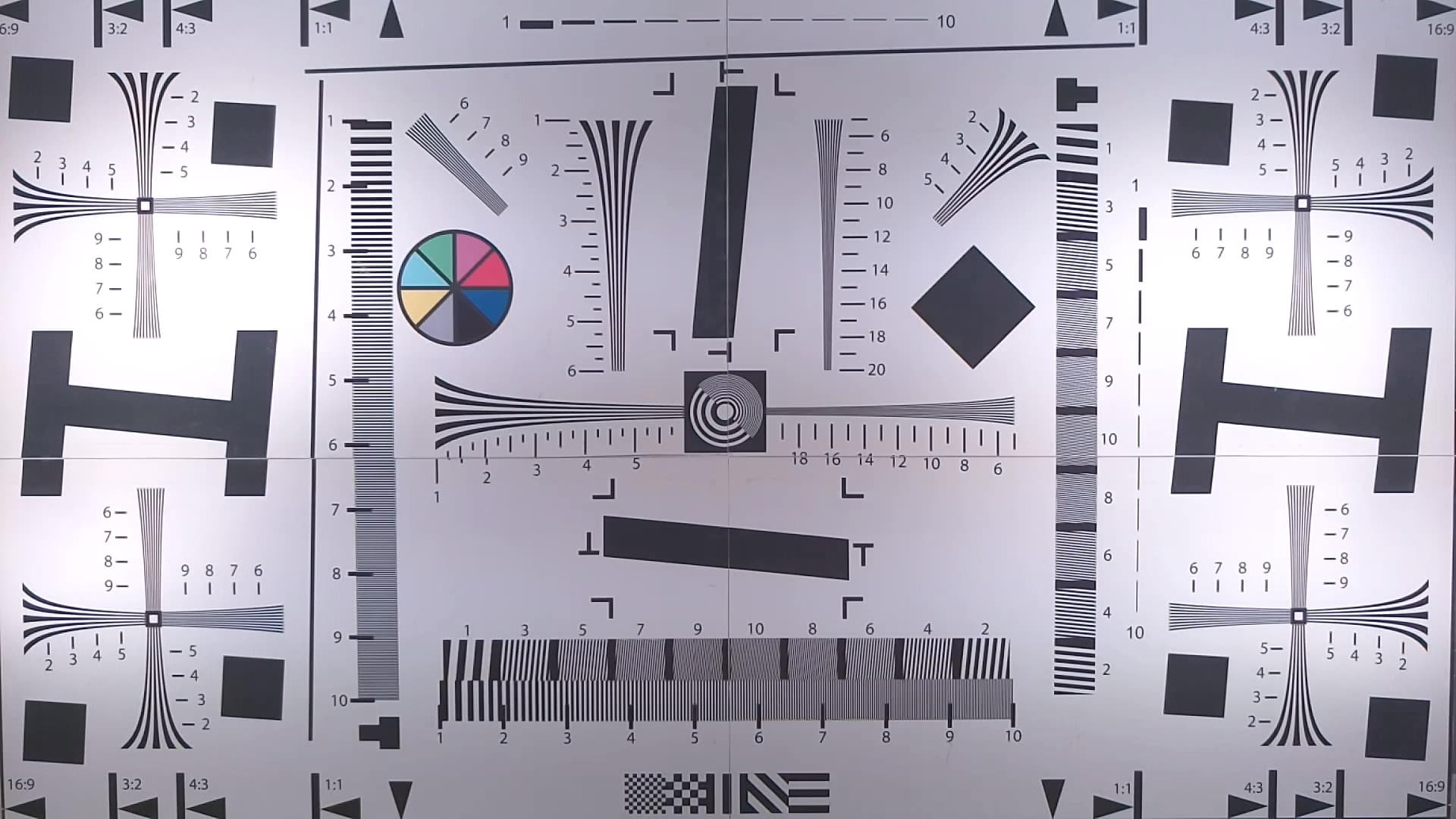 Данное тестирование проводится согласно опубликованной методике в целях установления чувствительности видеокамеры в неизменяемых условиях, а также для определения разрешающей способности аппарата.