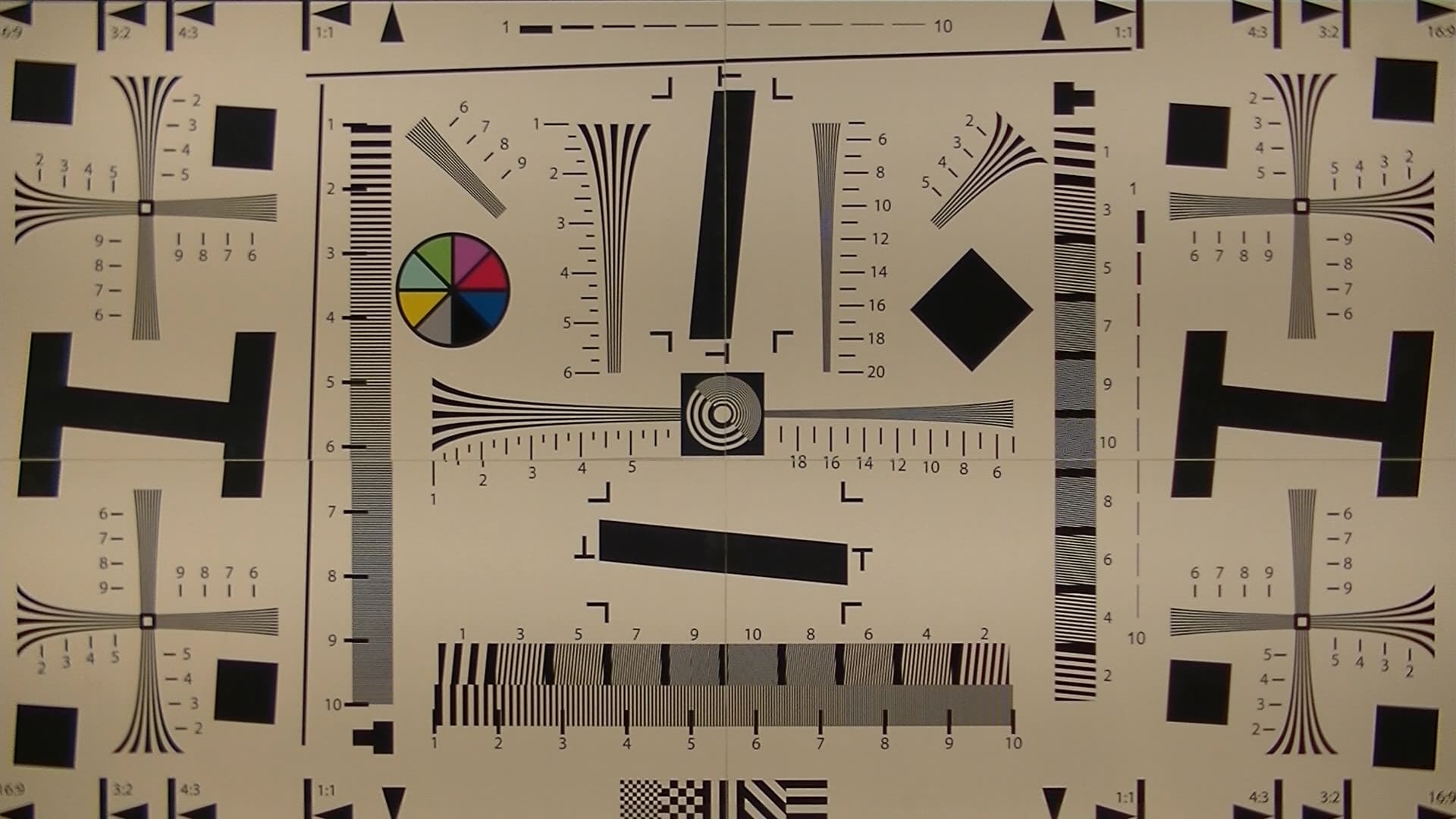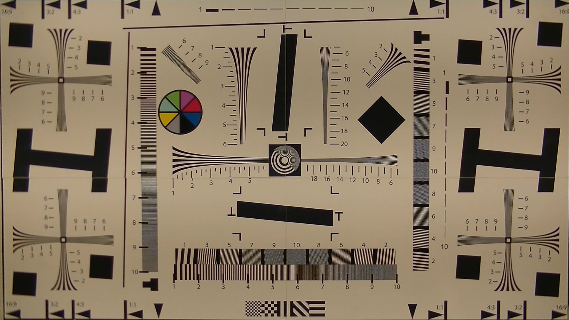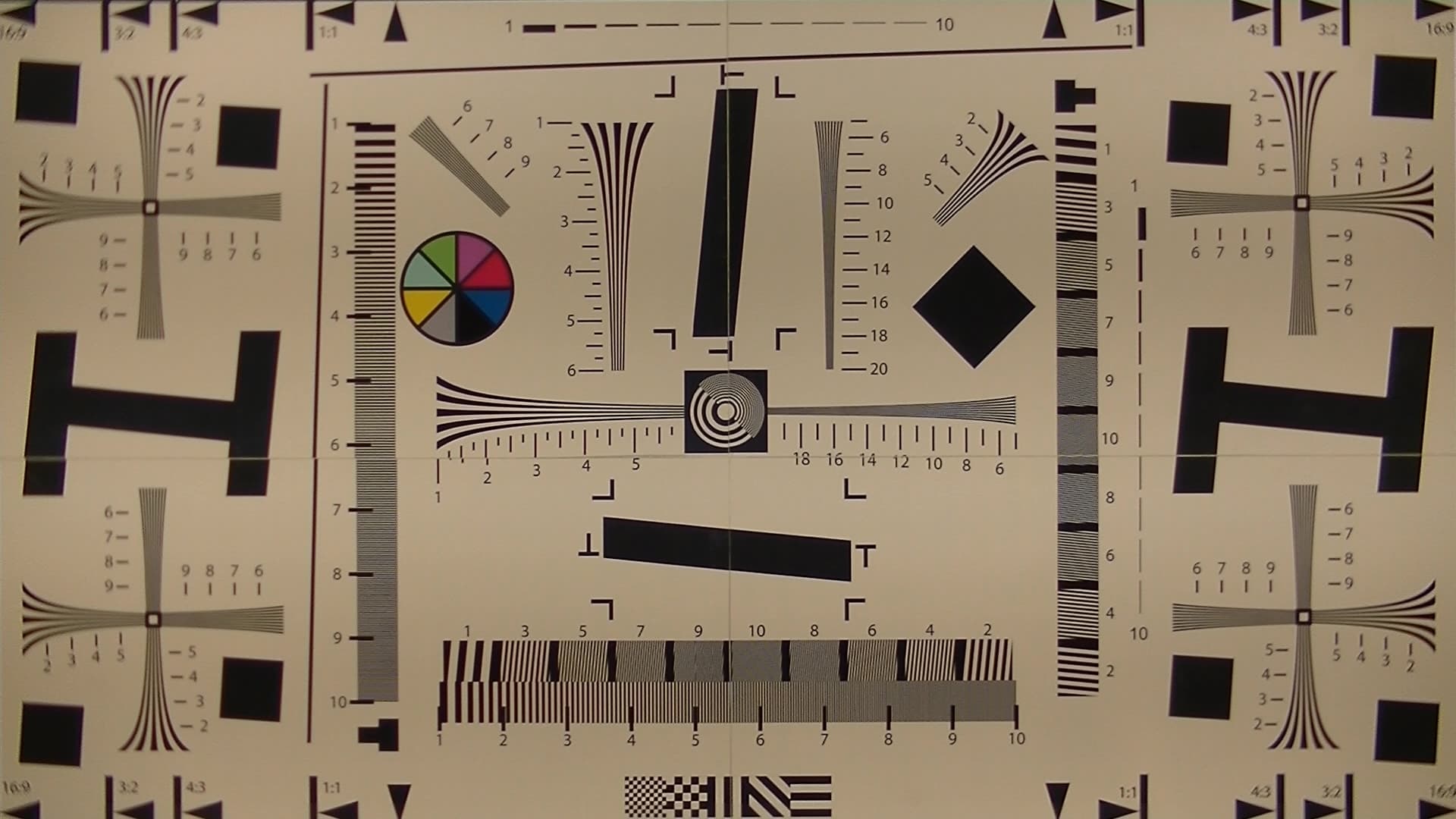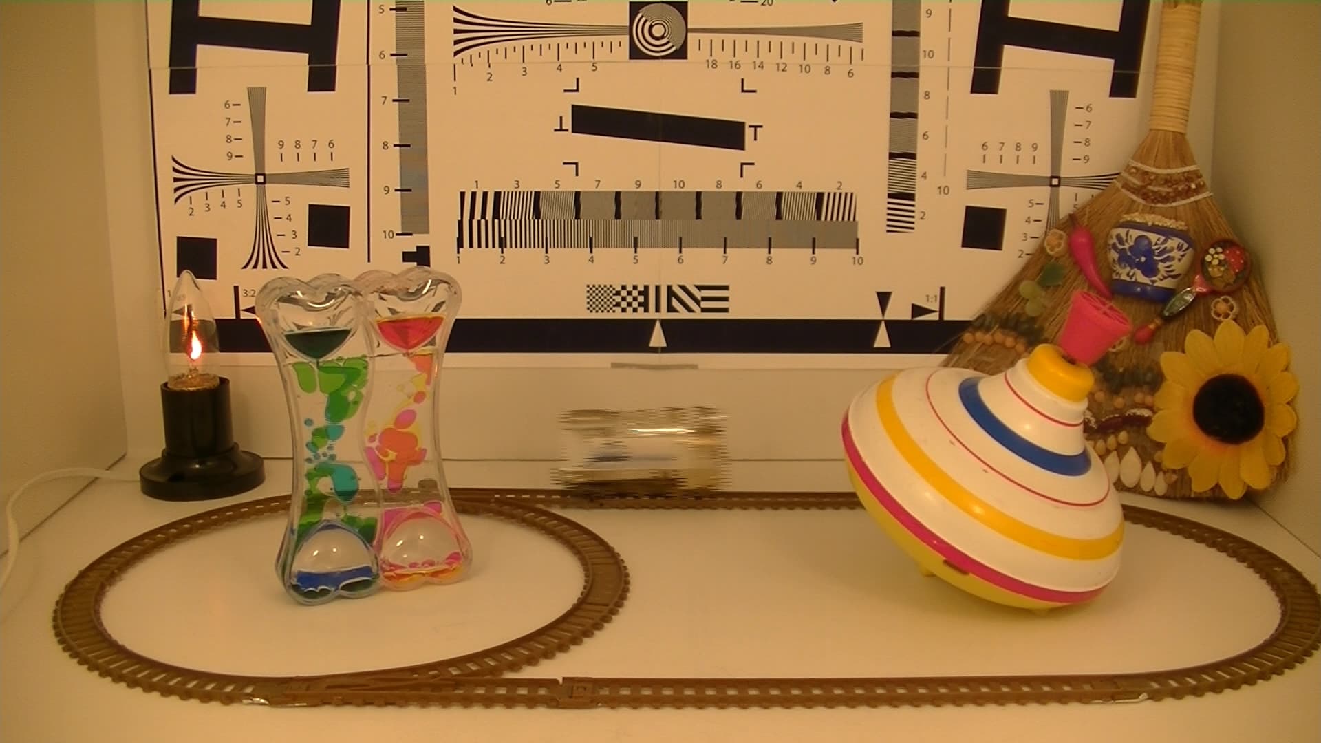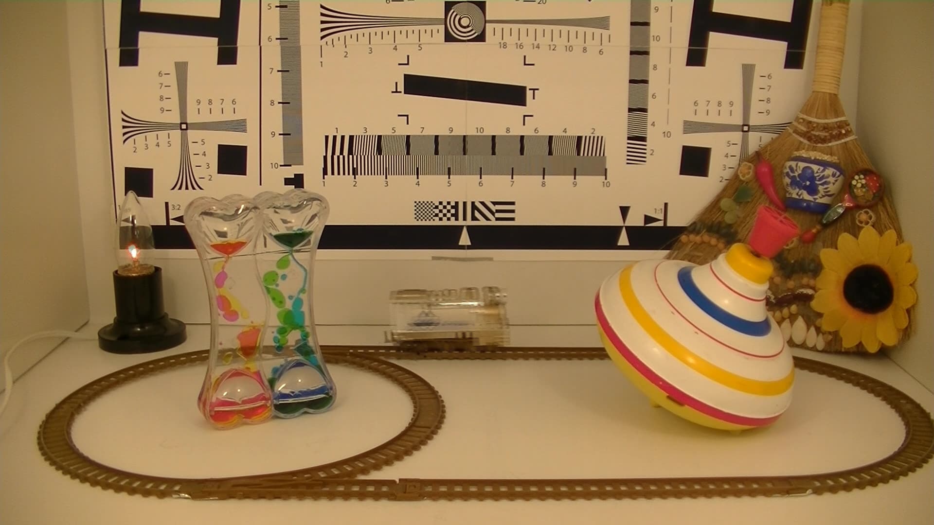 Данное тестирование проводится согласно опубликованной методике в целях установления чувствительности видеокамеры в неизменяемых условиях, а также для определения относительной четкости выдаваемой картинки. В данном случае для получения наилучшего результата при тестировании баланс белого выставлен в режим «Лампа накаливания», а краснота картинки объясняется близким расположением ламп.