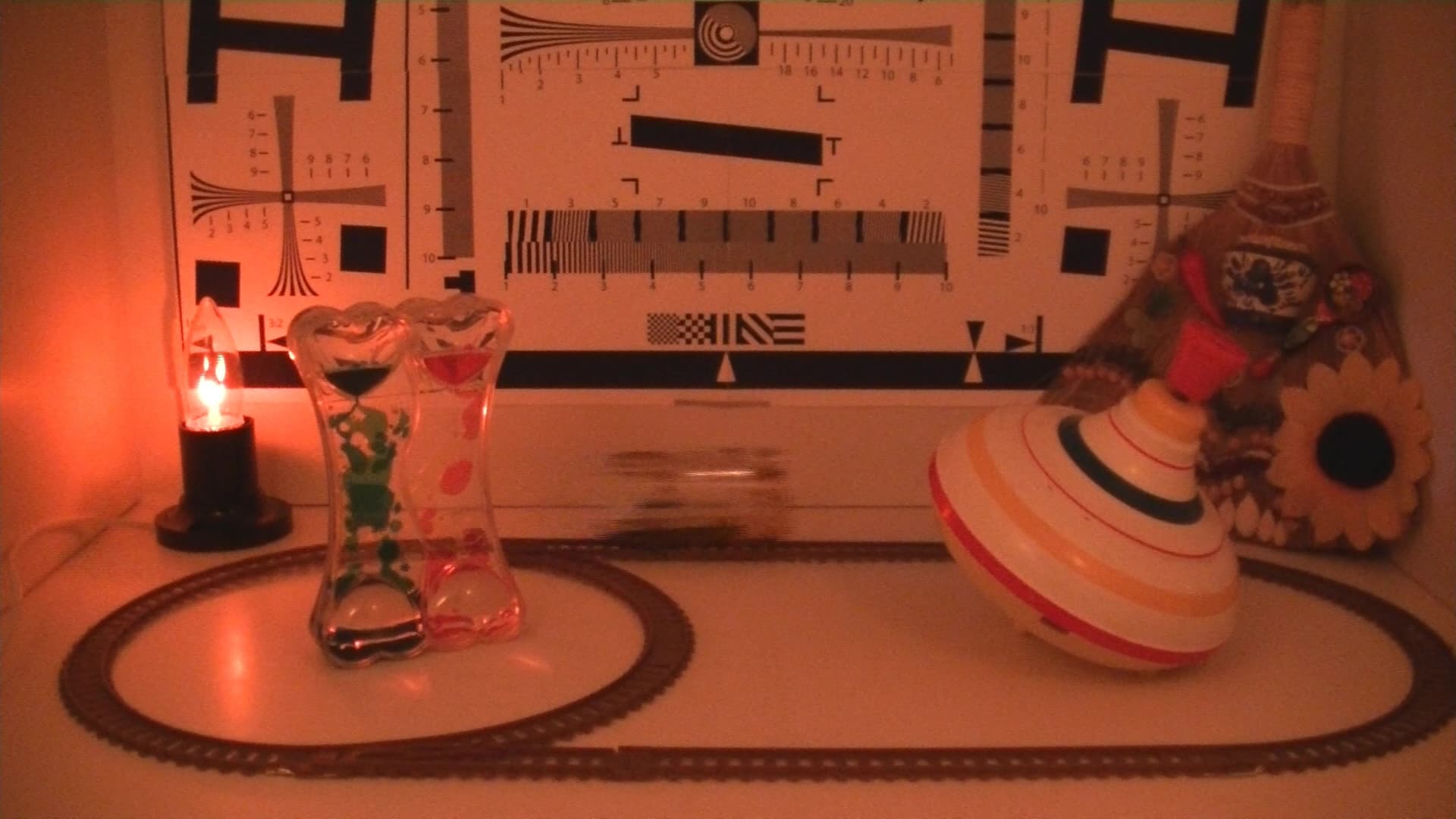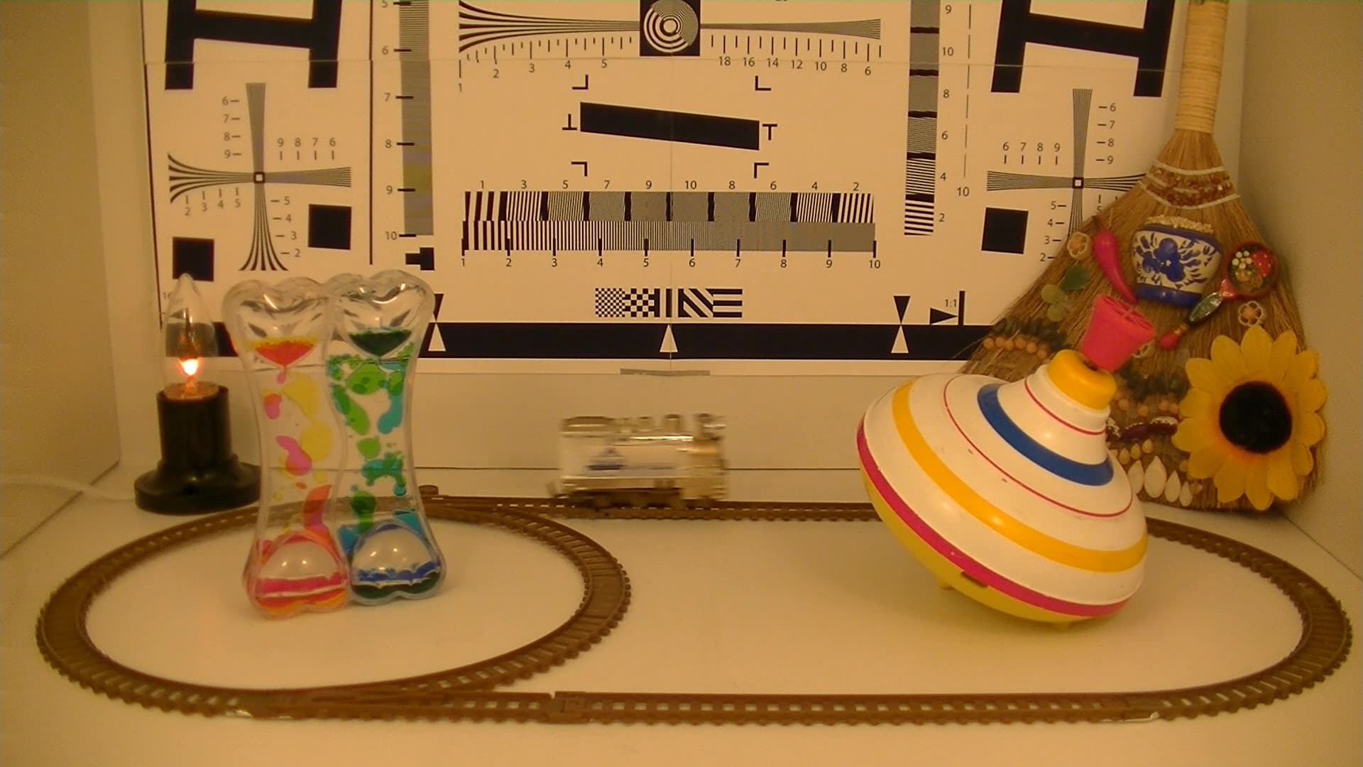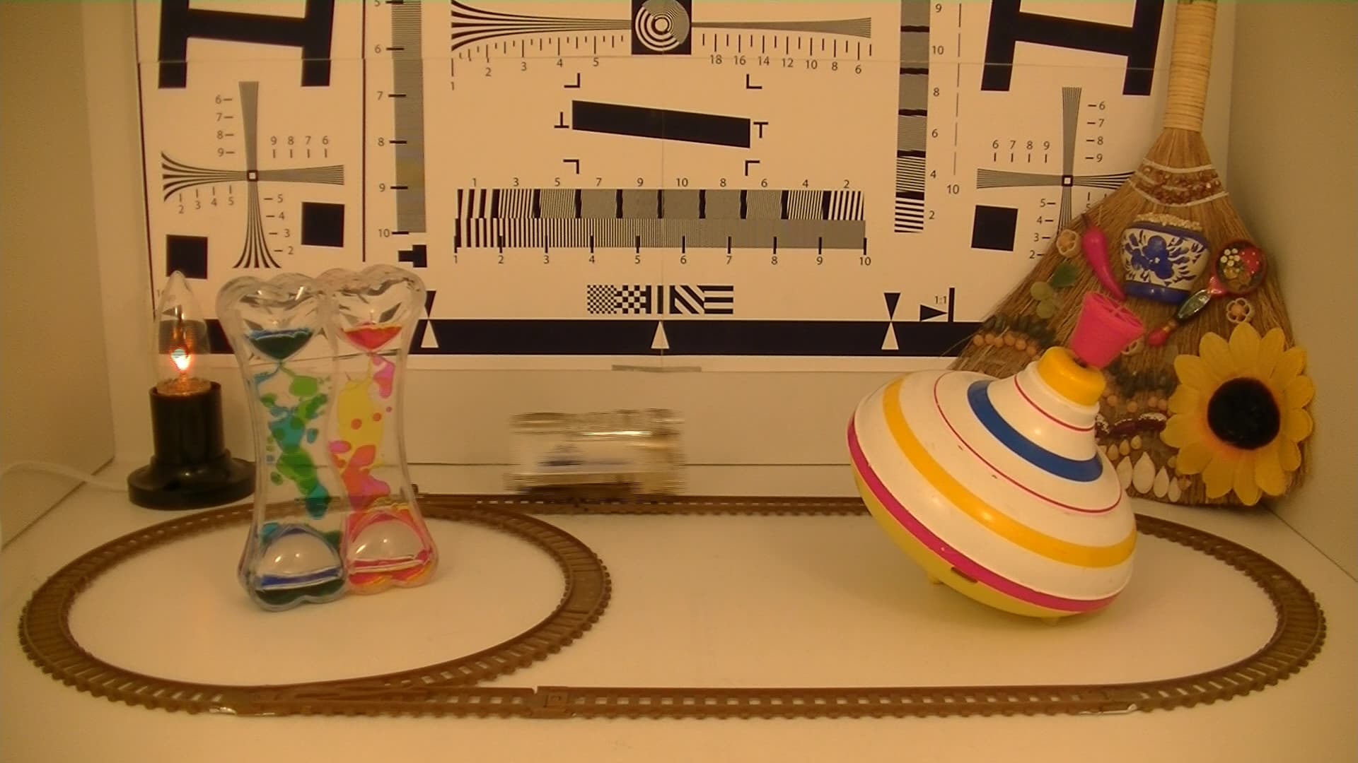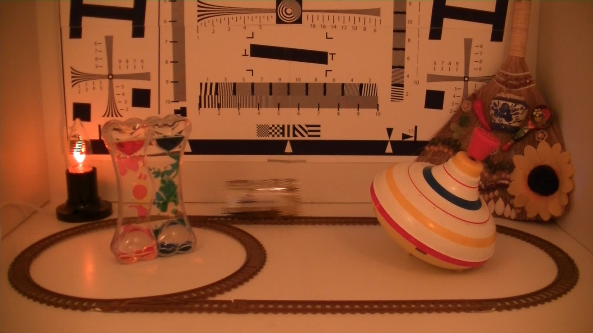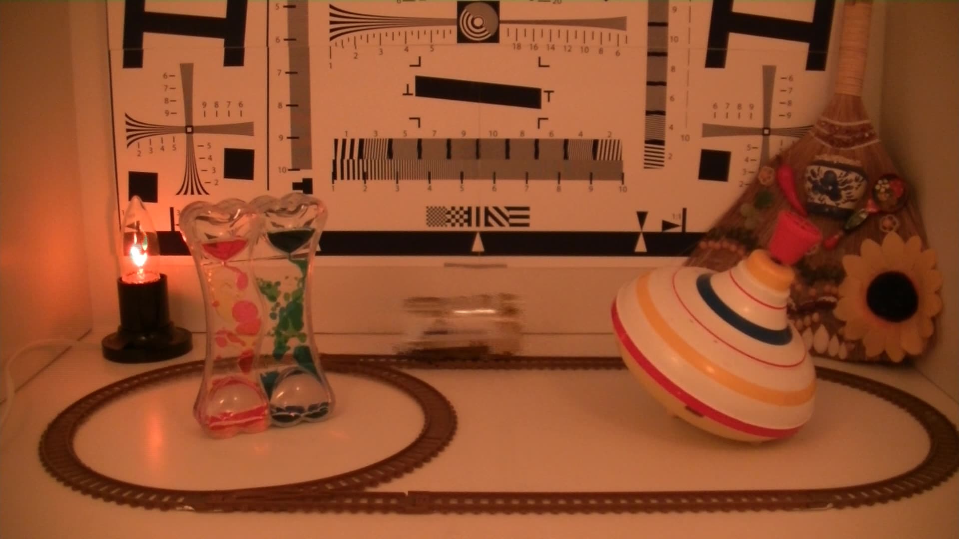 Данное тестирование проводится согласно опубликованной методике в целях установления чувствительности видеокамеры в неизменяемых условиях, а также для определения относительной четкости выдаваемой картинки. В данном случае для получения наилучшего результата при тестировании баланс белого выставлен в режим «Лампа накаливания», а краснота картинки объясняется близким расположением ламп.