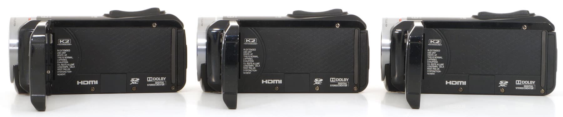 На торцах корпусов расположена традиционная главная кнопка REC. Интересно, почему она выделена красным цветом лишь в моделях, имеющих лампу подсветки? Спишем на тестовость образцов.