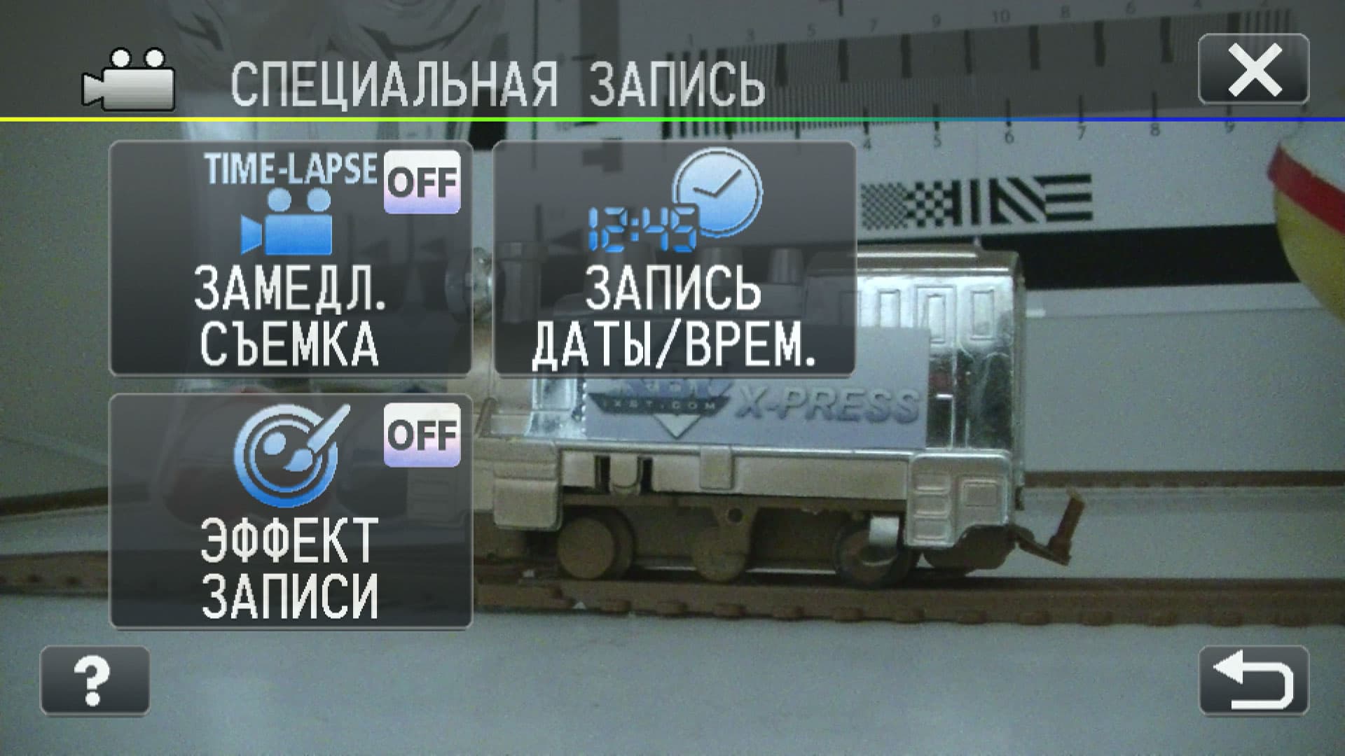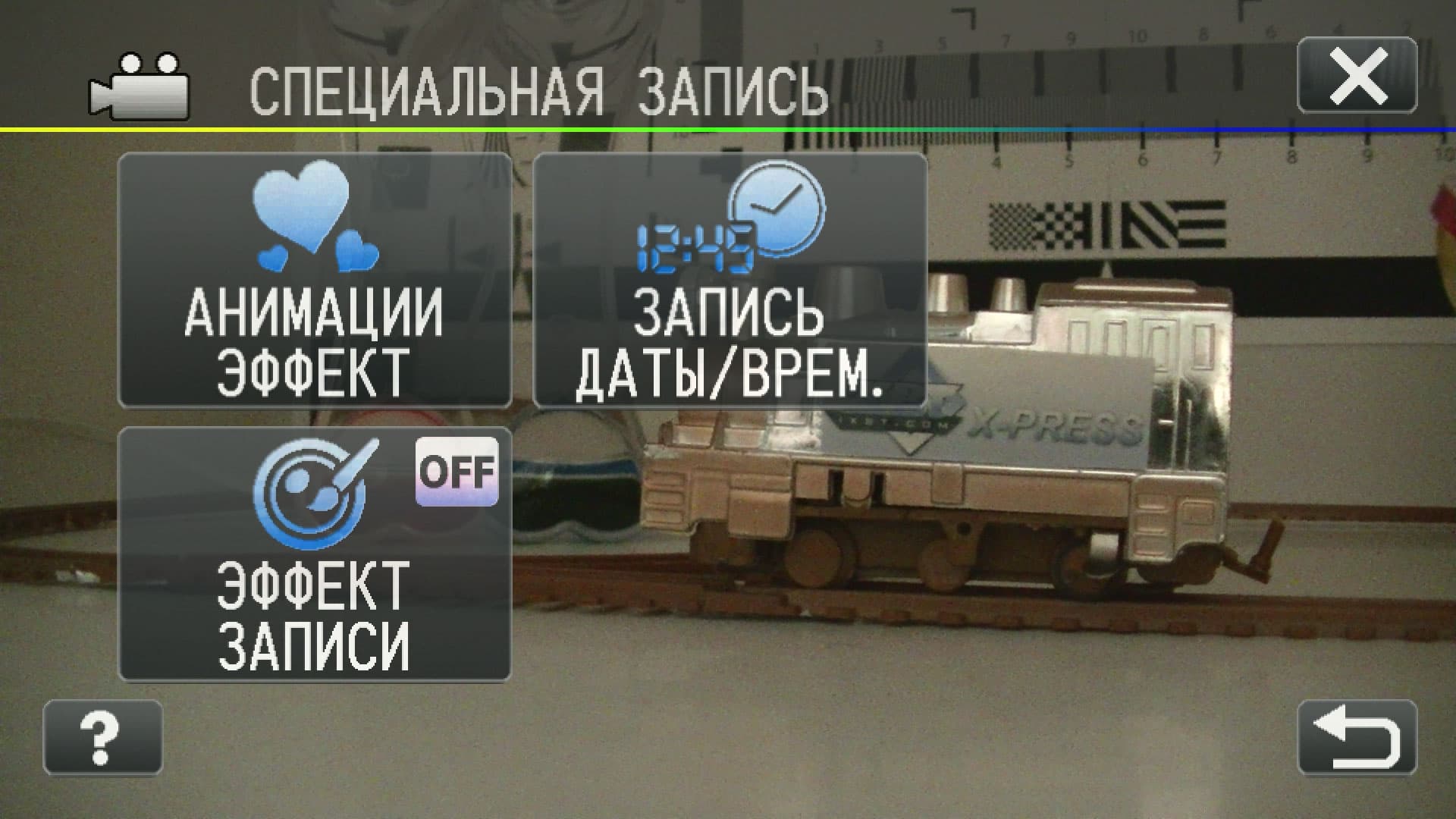 Вместо замедленной (точнее сказать, интервальной) съемки в модели RX115 имеются программные «развлекательные» средства — добавление к видео простеньких анимированных объектов, а также наложение на записываемое видео текущей даты и времени.
