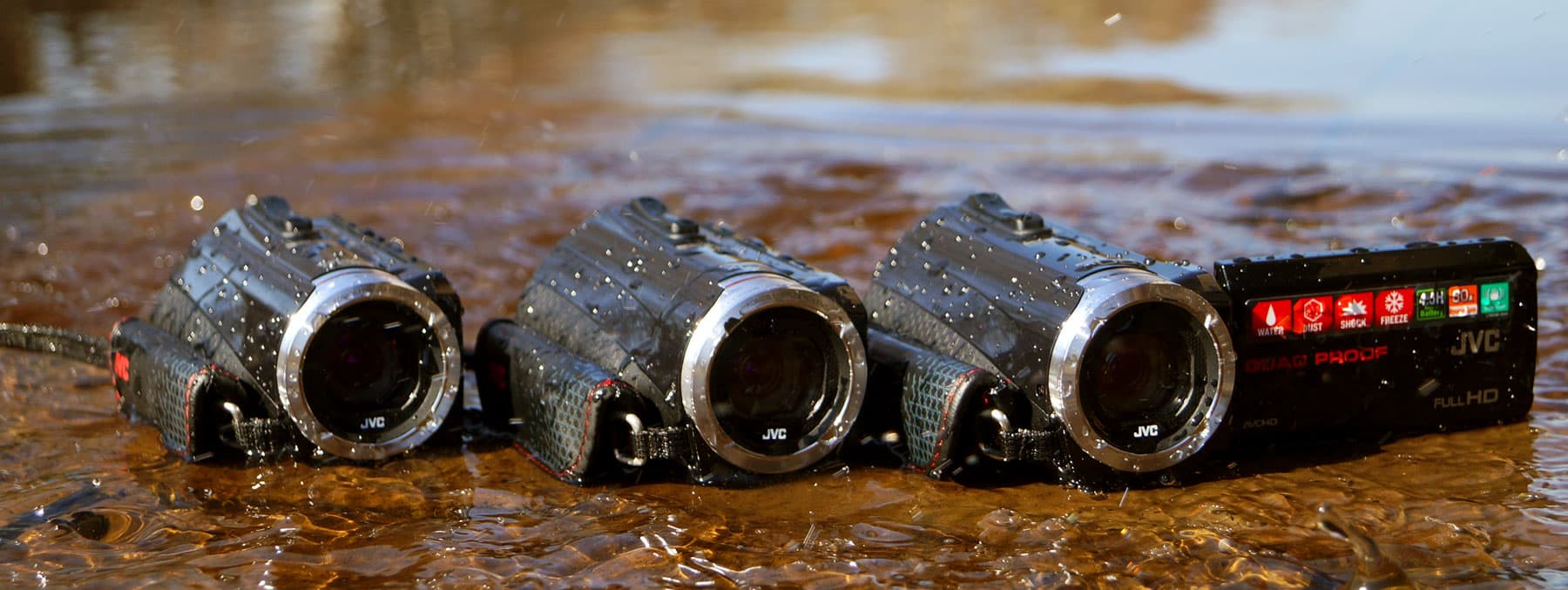 Очевидно, что в текущем году компания JVC постановила не ошарашивать своих поклонников разнообразием моделей видеокамер (хотя, думается, что-то из свежих разработок у компании заготовлено, однако это «что-то» мы увидим не раньше следующего года). Ограничив список видеокамер-2014 тремя похожими моделями, основной упор JVC сделала не на качестве видеосъемки, не на «просветлении» оптических систем или усовершенствовании стабилизационных микромеханизмов. Все проще: основной целевой аудиторией этой линейки камкордеров объявлены пользователи, которые ведут активный образ жизни. Такой, где велик риск встретить вместе с камерой одну из перечисленных неприятностей: воду, грязь или пыль, сильную вибрацию и низкую температуру. Итак — привет, мореплаватели, путешественники и прочие туристы!