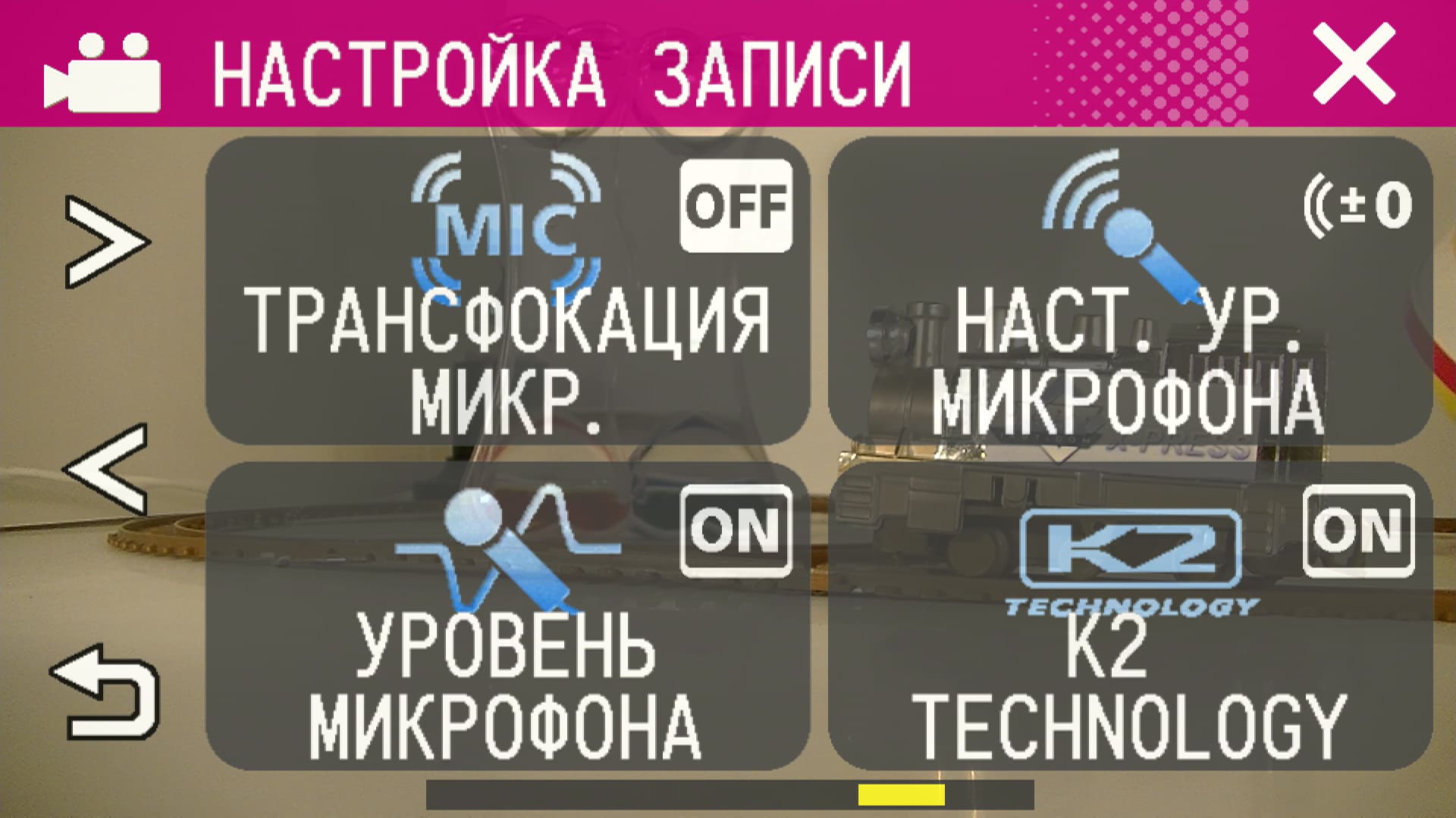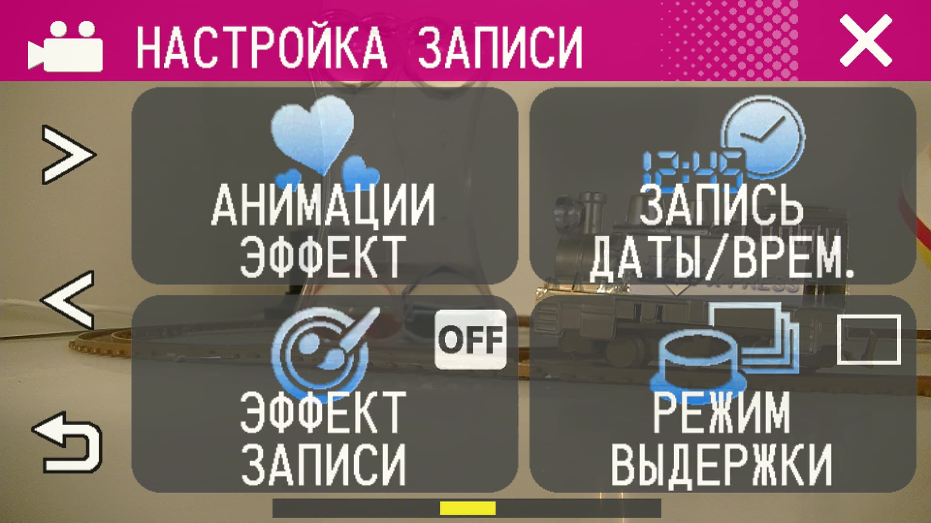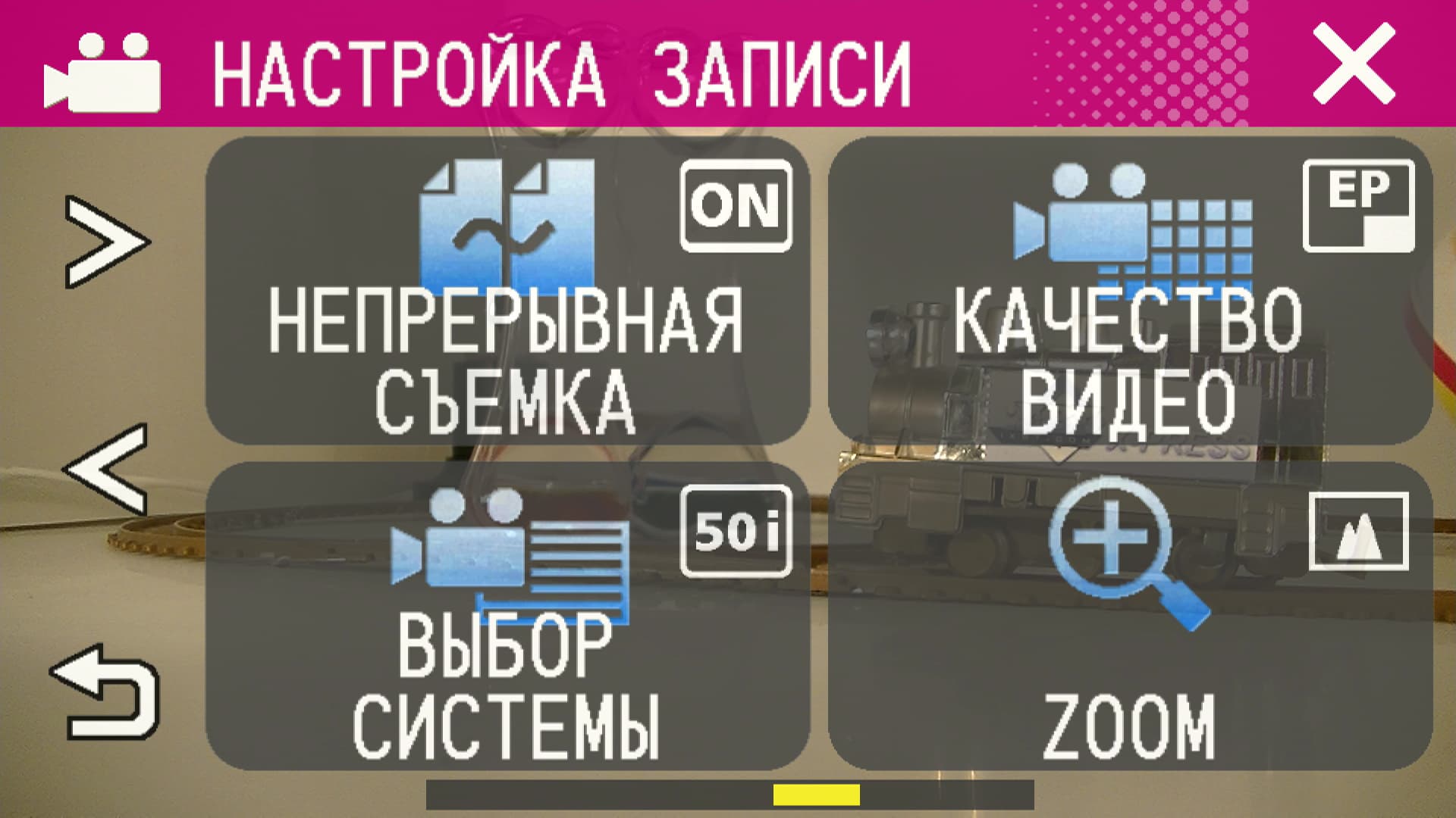 Когда камера переведена в режим ручных настроек, то параметры записи состоят из семи страниц. Это очень немало для любительской видеокамеры начального уровня.