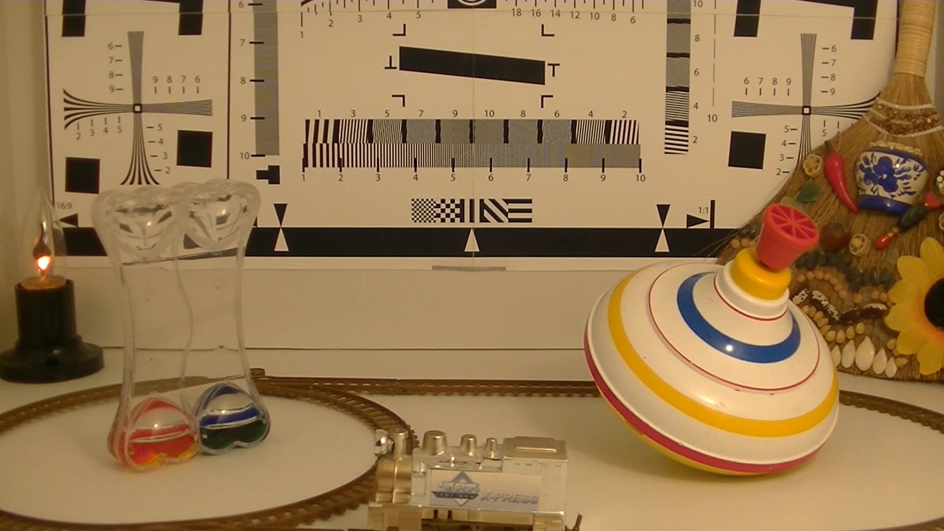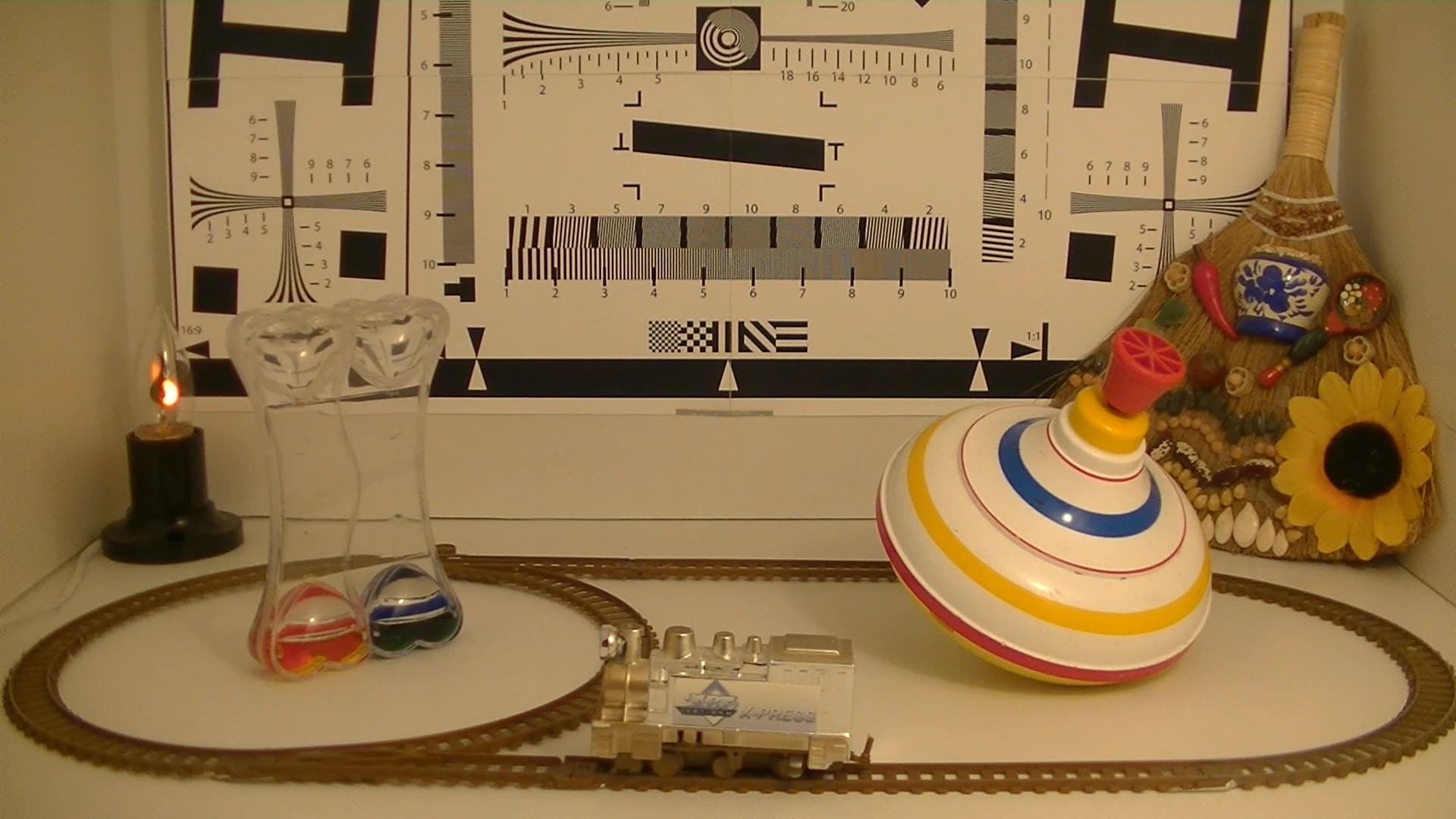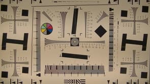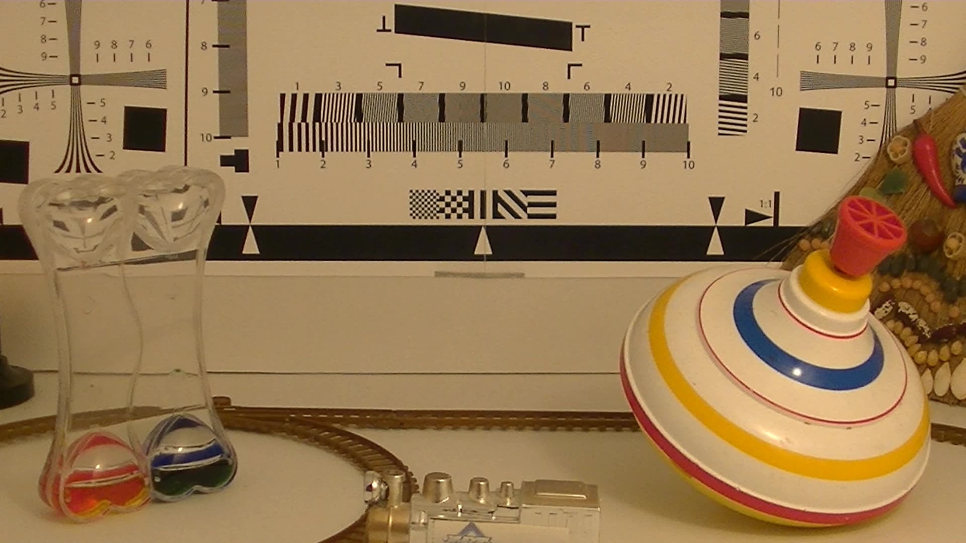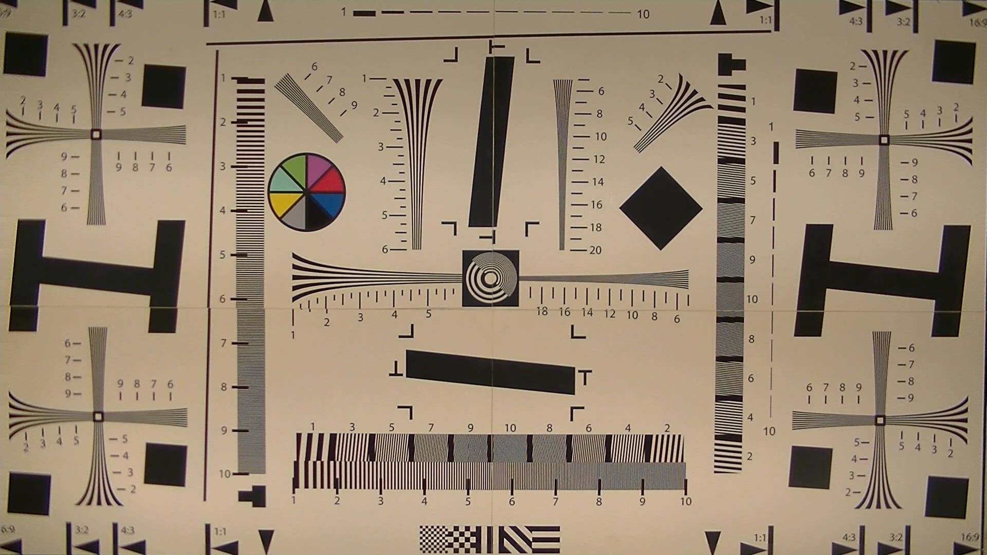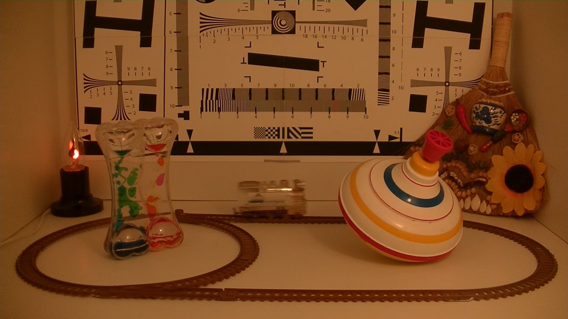 Данное тестирование проводится согласно опубликованной методике в целях установления чувствительности видеокамеры в неизменяемых условиях, а также для определения относительной четкости выдаваемой картинки. В данном случае для получения наилучшего результата при тестировании баланс белого выставлен в режим «Лампа накаливания», а краснота картинки объясняется близким расположением ламп.