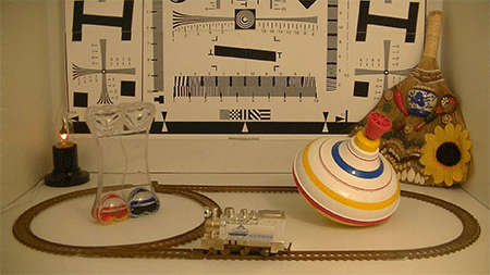 Следующий вопрос, который нужно рассмотреть — уровень роллинг-шаттера. Подробнее об этом явлении в современной видеосъемке можно прочесть в материале Роллинг-шаттер в видеосъемке — описание дефекта, примеры, пояснения). Опыт, накопленный в процессе поисков роллинг-шаттера, позволяет утверждать, что самым эффективным способом выявления данного дефекта является обычный электрический автомобильчик, движение которого дает ту самую необходимую степень тряски и рывков, выдержать которую могут только самые современные, очень быстрые матрицы.