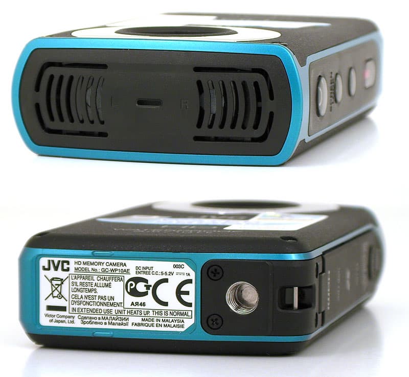 Верх корпуса имеет систему щелей, под ними расположены микрофоны и динамик-пищалка. Дно камеры оснащено резьбовым отверстием для закрепления камеры на штативе.