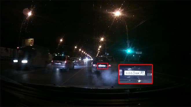 По просьбам читателей данная камера была протестирована также в качестве автомобильного регистратора. Причём в режиме "ночного города" - именно такой режим наиболее интересен участникам Конференции ixbt.com. Видеоролик и стопкадр из него приводятся ниже: