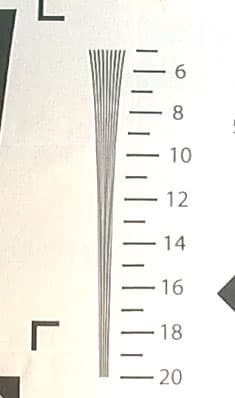Для определения разрешающей способности камеры пришлось воспользоваться проверенным, однако не совсем стандартным способом: съемкой одного фрагмента тестовой таблицы, распечатанной на метровом листе, с последующим совмещением в графическом редакторе полученного кадра с шаблоном миры. Отсюда и результат: 900 линий.