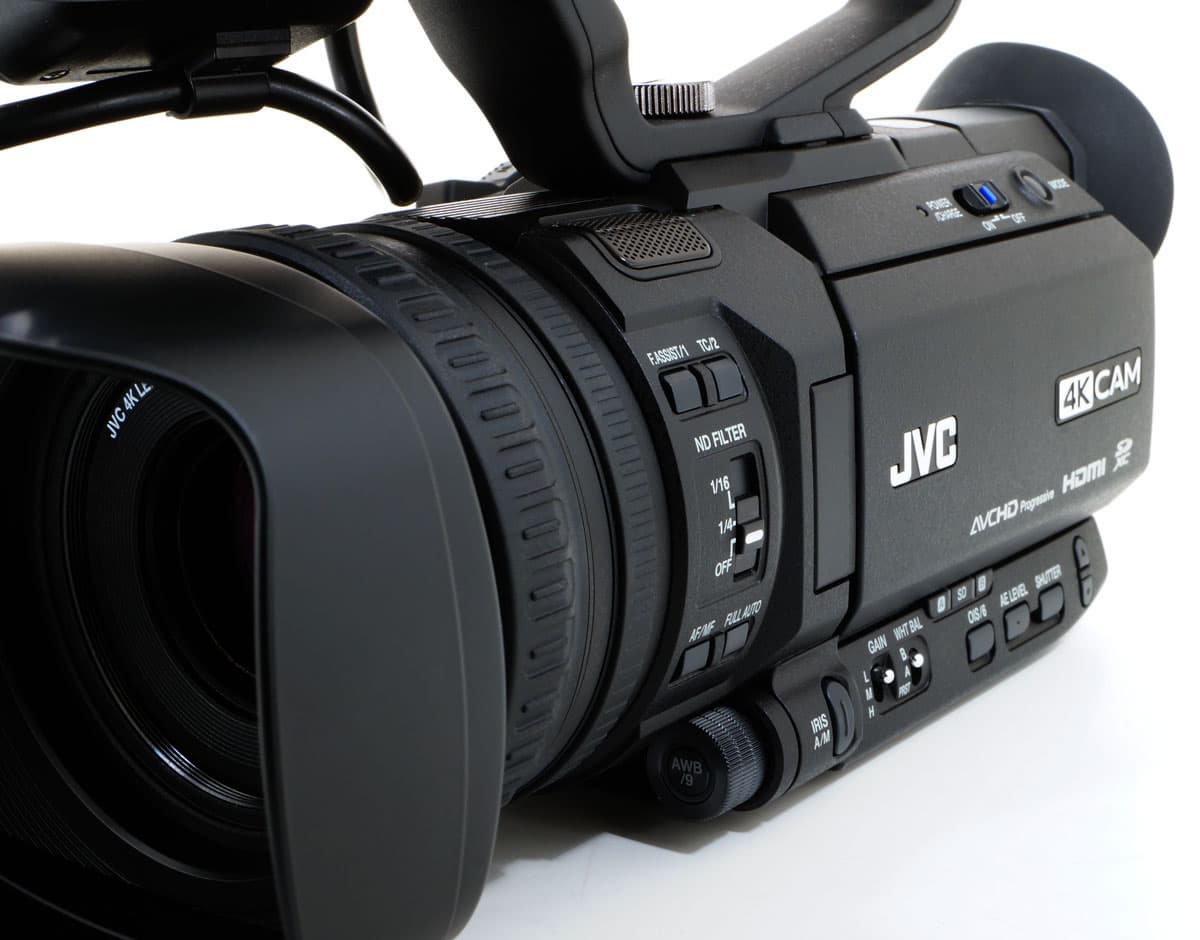 Без малого один год назад мы познакомились со старшей версией этого камкордера, JVC GY-HM200. Профессиональная камера с уникальной функцией сетевой трансляции — вот чем запомнился аппарат (те, кому не нравится подобное деление камер на любительские и профессиональные, могут использовать иную формулировку, достаточно точно отражающую положение любой камеры на рынке: дешевые и дорогие). Рассматриваемый сегодня камкордер является практически точной копией HM200, с тем отличием, что здесь отсутствует возможность сетевой трансляции. Но не только по этой причине мы взялись за, казалось бы, повтор. Дело еще и в прошивке. За время, прошедшее с выпуска камеры, разработчик представил несколько обновленных версий программного обеспечения, которые довольно серьезно расширяют функциональность аппарата, увеличивают некоторые важные показатели. Мы обязательно отразим эти факты и изучим их по возможности подробно, хотя и обо всех прочих функциях камеры традиционно расскажем.