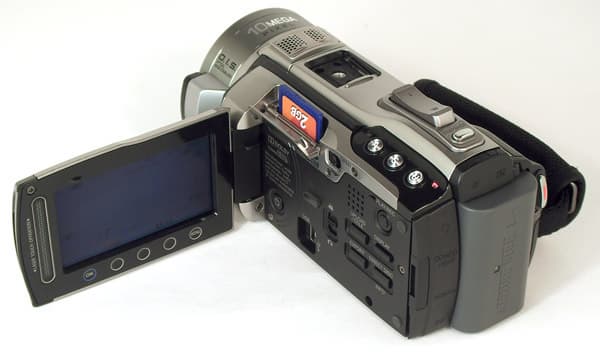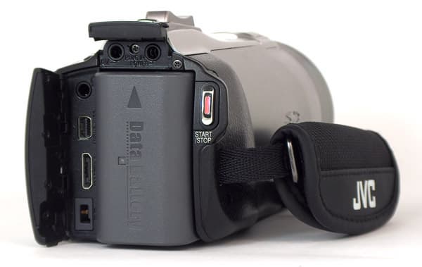 Все входы/выходы, исключая USB, расположены с торца видеокамеры. Над аккумулятором меется откидная дверца, под которой спрятаны композитный видеовыход и вход для микрофона. Слева от аккумулятора под похожей дверцей находятся: выход на наушники, компонентный видеовыход, выход HDMI и гнездо для подключения блока питания и зарядки батареи.