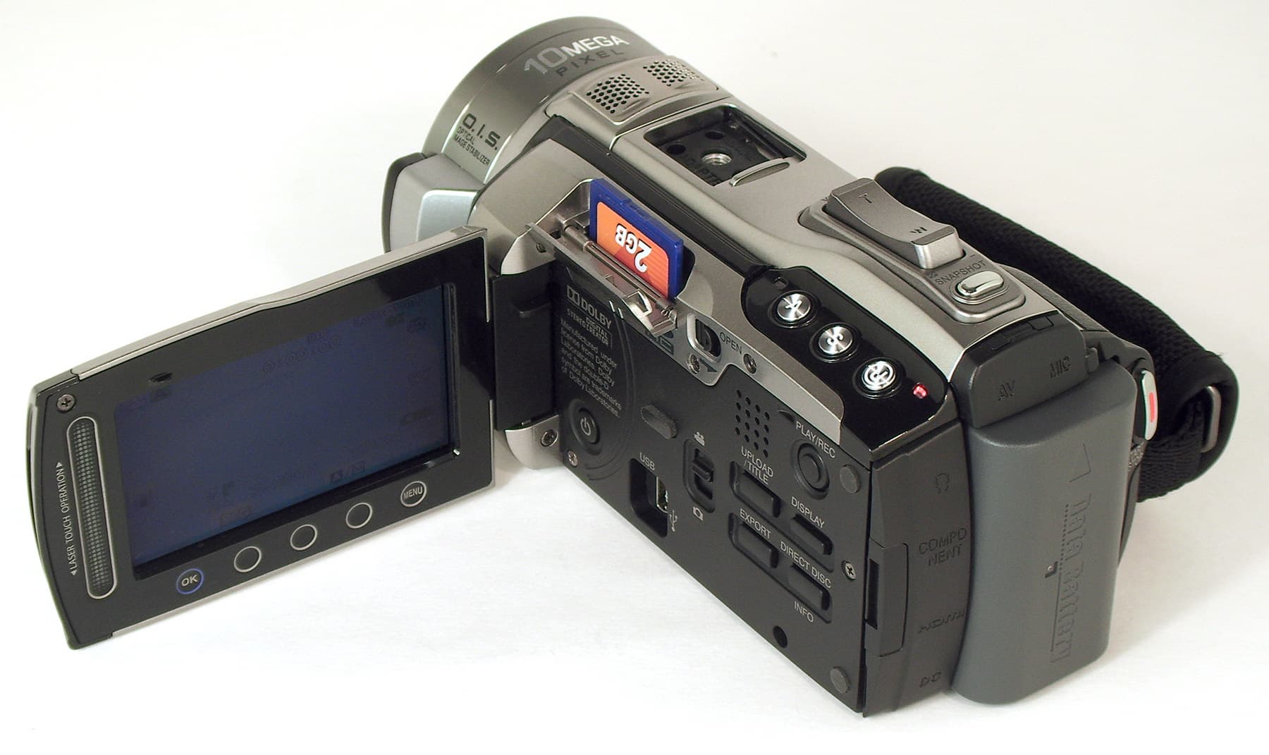 Прочие характеристики | - LCD монитор 2,8" 207 000 пикс. - оптический стабилизатор изображения - встроенная фотовспышка - гнездо для крепления внешнего микрофона (Shoe Adapter) - автоматическое переключение записи на SD/SDHC карту (если внутренняя память заполнена) - система управления "Laser Touch" - автоматическая регулировка яркости ЖК-экрана - настройка уровня микрофона и наушников - сетка, помощник при фокусировке (окаймляется синими контурами) — замедленная видеосъёмка (с интервалами в 1, 2, 5, 10, 20, 40 и 80 сек) — режим скоростной видеозаписи 100, 250 и 500 кадр/сек - автоматическая фотосъёмка при появлении в кадре лиц |