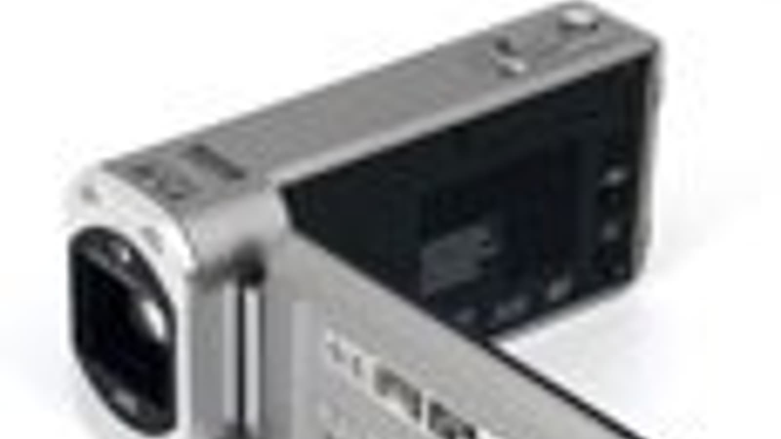 Ремень камеры снабжён дополнительным ремешком, с помощью которого камера крепится на кисть. Здесь же, со стороны ремешка, имеется съёмная крышка, под ней — углубление для установки аккумуляторной батареи. Прилагаемая батарея имеет ёмкость 1200 мА·ч и позволяет вести непрерывную видеосъёмку в режиме XP до 109 минут с работающим ЖК-экраном. Протестировать длительность работы камеры с выключенным экраном не получится: к сожалению, имеющийся в камере режим Silent не гасит ЖК-экран полностью, как это сделано в JVC GZ-GX1. Экран продолжает работать, лишь его яркость, и без того невеликая, снижается до предела, что немного сохраняет энергию батареи (всего на один-два процента). А при закрытом ЖК-экране камера тут же выключается.