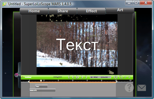 Ну а где же тут титры, столь необходимые для обозначения в фильме места, даты съемки или другого обозначения события? Эти инструменты скрыты в меню под кнопкой Art. Небогато их всего два: обыкновенный текст и текст в рамке.