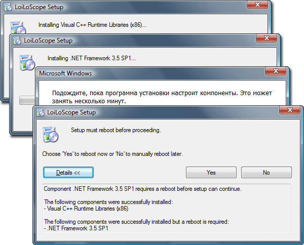 Но и после установки всех, казалось бы, компонентов, и последующей перезагрузки, программе всё мало. Почему? Обратим внимание на подозрительно небольшой размер дистрибутива LoiLoScope: 600 килобайт (!). Ну конечно, такие фокусы нам давно знакомы мизерная величина дистрибутива может означать лишь одно. А именно новое обращение к родному серверу и скачивание необходимых файлов непосредственно в процессе установки.