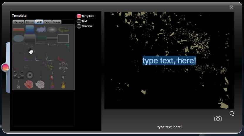 Щелчок по одной из кнопок создаст новый объект, который расположится где-то на рабочем пространстве. Найдите его (он где-то тут, в космосе) и дважды щёлкните по нему. В левой части открывшегося модуля настройки объекта присутствуют инструменты для изменения внешнего вида рисунка путём выбора нужного шаблона, инструменты для настройки шрифта и тени.