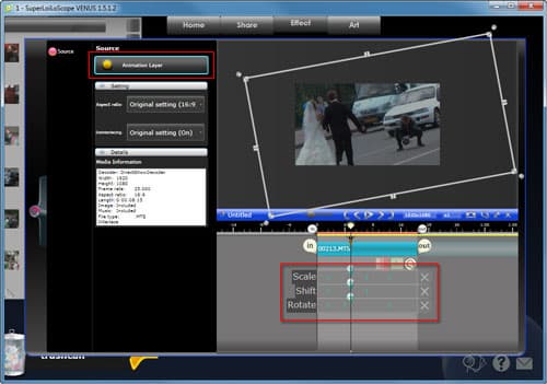 Передвигая ползунок времени по тайм-линии, можно мышкой изменять положение или размер кадра — всё эти операции зафиксируются здесь же, на тайм-линии, в соответствующих полях Scale (изменение размера кадра), Shift (сдвиг кадра), и Rotate (поворот кадра).