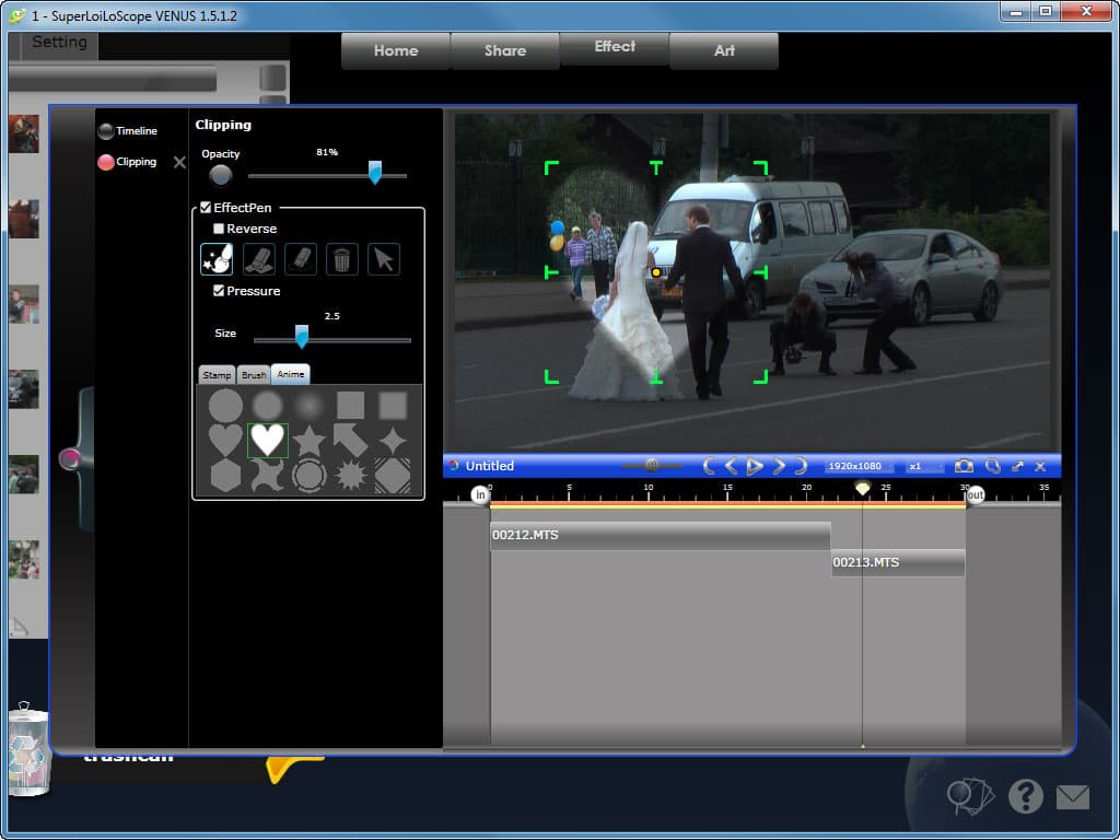 Инструменты, входящие в группу Art, не изменились, да этого и не требуется: вся необходимая функциональность уже включена. Правда, не хватает одного: импорта сторонних изображений в качестве дополнительных объектов для "украшения" видео.![]()