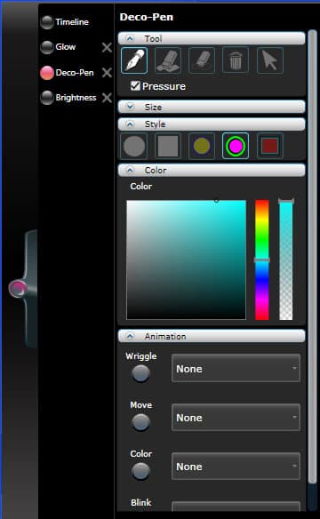 Взглянем, как производится такая работа на практике. Для ознакомления вполне подойдёт инструмент Deco-Pen или Deco-Stamp. По их названиям становится понятным назначение этих орудий: рисование поверх видео. Единственное их различие в том, что первый позволяет рисовать карандашом или кистью, а второй системами частиц (объектов), как в программе Particle Illusion или с помощью плагина Trapcode Particular к программе Adobe After Effects.