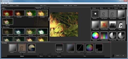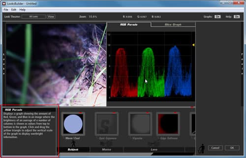 Прежде, чем изучать присутствующие здесь нехитрые инструменты, отдадим должное разработчику: программа работает на редкость устойчиво, без сбоев. Мы имеем возможность сравнивать, и, в первую очередь, вспоминается плагин ProDAD Vitascene. Оба плагина (и Magic Bullet Looks, и Vitascene) имеют несомненное сходство как в своей архитектуре (собственный графический интерфейс пользователя, отображение вносимых в видео изменений в реальном времени и т.д.), так и в технических требованиях (довольно мощные видеокарты). Правда, одно отличие всё же имеется: Vitascene умеет проигрывать в своём окне видео, а Magic Bullet Looks всегда отображает один-единственный статичный кадр (который, правда, видоизменяется в зависимости от выбираемого пользователем эффекта).