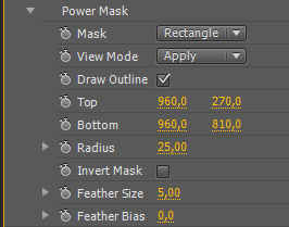 Эта маска может быть двух видов: прямоугольная и эллиптическая. Остальные настройки маски касаются её размера, положения, способа отображения, степени размытия границ и т.д.