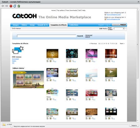 В данном модуле создания дисков имеется девять шаблонов оформления разной тематики; дополнительные шаблоны можно приобрести в онлайновом магазине медиаконтента Catooh.