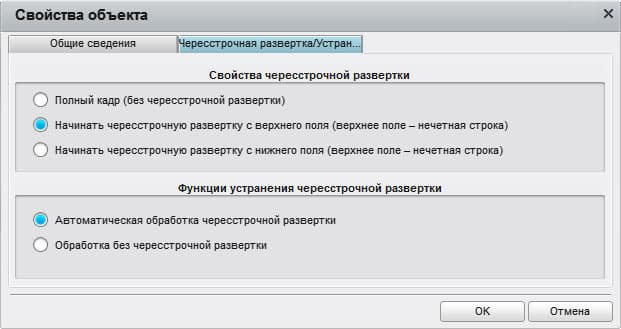 Полоски — те самые поля, о которых подробно рассказывается по приведённый выше ссылке. Да, многие плееры умеют автоматически проводить деинтерлейс, или, как говорят, «на лету» — непосредственно в процессе воспроизведения интерлейсного видео, но многие не умеют. Чтобы обезопасить себя от возможных казусов, следует воспользоваться инструментом устранения чересстрочности, который предлагает программа: