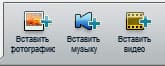 Следующие вкладки меню инструментов вряд ли требуют подробного описания — здесь можно добавить к проекту рисунок или фотографию, обогатить фильм закадровой музыкой или другим заранее подготовленным аудиосоповождением. Наконец, имеется возможность добавить видеоролики: кнопка Вставить видео вновь запустит окно выбора источника, с которого мы начинали знакомство с программой.