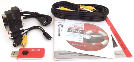 Спереди адаптер ничем не отличается от пресловутой флэшки — тот же стандартный USB-штекер, которым она вставляется в USB-порт компьютера или ноутбука. Если это сделать невозможно по каким-то причинам, то для удобства пользователя в комплекте имеется USB-удлинитель. Но вот с другой стороны адаптера имеется то, что отличает его от обычного накопителя, — это универсальный порт, который сочетает в себе композитный видеовход, стереоаудиовход и вход S-Video. Конечно, здесь потребуется специальный переходник, но он также имеется в комплекте.
