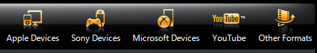 Далее, можно увидеть те нехитрые настройки каждого из форматов, предназначенных для проигрывания на аппаратных плеерах.