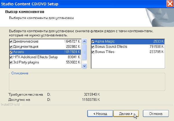 Установка занимает довольно длительное время – около часа. Bonus Content DVD содержит кучу дополнительных приложений вроде SmartSound и шаблонов анимированных меню для создания собственных DVD.