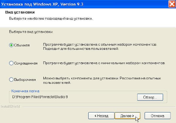 Программа предложит выбрать тип установки и папку, в которую будут инсталлироваться файлы программы.
