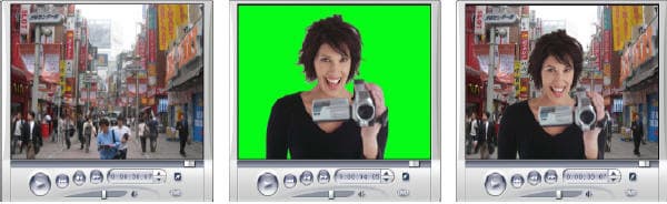 Используя программу Studio Plus 9, вам становится доступна также широко применяемая в профессиональном телевидении технология «хроматический кей» (проще говоря, хромакей). Эффект хромакея часто называют эффектами «синего» или «зелёного» экрана, поскольку действие, которое разворачивается на переднем плане, снимается перед однотонным синим или зелёном фоном. Затем этот самый фон замещается на любое другое изображение, при этом передний план остаётся нетронутым. Вспомните прогноз погоды на телевидении, там тоже используется подобный эффект. Синий или зелёные цвета обычно предпочтительней использовать с хроматическим кеем, поскольку их удаление не повлияет на цвет кожи человека. Но для хромакея в Studio, в принципе, можно использовать и любой другой цвет.