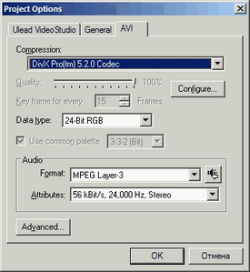 2.3. В Ulead Video Studio настраиваем параметры выходного файла: