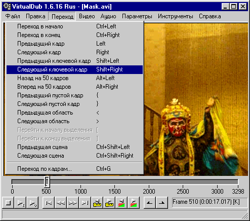 C помощью сочетаний клавиш + и + перемещаемся только по ключевым кадрам, индикация текущей позиции отображается в специальном окне внизу справа. Если перемотка идет строго через 10, 15 или 30 кадров (в зависимости от камеры, которой проводилась съемка), то, скорее всего эти фрагменты остались нетронутыми. Если же интервалы между кадрами оказались отличными от указанных, то весьма вероятно, данный эпизод фильма подвергся перекодированию.