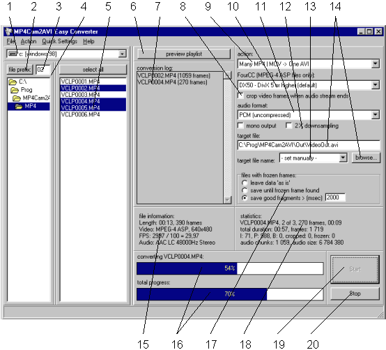 Теперь рассмотрим подробнее окно программы MP4Cam2AVI: