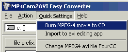 - Burn MPEG-4 movie to CD - типовые настройки программы для осуществления записи на CD / DVD без дополнительного редактирования сторонними программами.