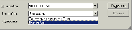 Сохраняем VIDEOOUT.SRT в ту же папку, где расположен VIDEOOUT.AVI