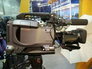 Конечно, на выставке с большим размахом были представлены видеокамеры любых размеров и форматов, в этот раз буквально все экспоненты использовали одинаковую схему - ярко освещенный объект и вокруг него на штативах камеры с индивидуальными мониторами, чтобы можно было непосредственно сравнить картинку. В качестве объекта съемки Panasonic использовала уменьшенную копию мотоцикла и цветы, Sony - игрушки, Окно-ТВ - одетых под екатерининскую эпоху художников и позёров в приятном интерьере.