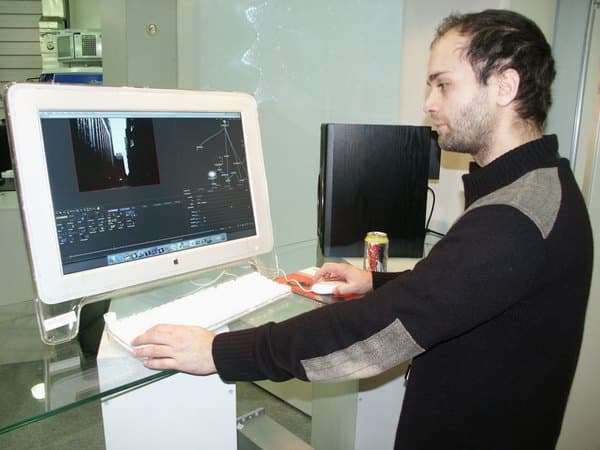 Тут же монтажер "Последнего героя" Андрей Назаров показывал систему, "которая умеет всё", а именно программу композитинга/морфинга/анимации/коррекции Shake v3.5. В качестве примера использовались съемки уходящей вдаль улицы, в которой к разным областям были применены выборочная цветокоррекция/шумоподавитель, заменено небо, дорожные знаки, применена фоновая градиентная подсветка. В результате банальный видеоряд приобрел супер-фактурный вид в стиле футуристических кинокартин а-ля "Хроники Риддика".