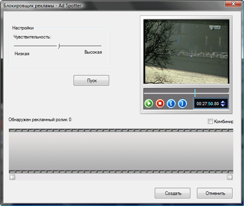Откуда тут могли взяться целых 150 рекламных блоков? Программа явно перестаралась, посчитав за рекламу практически всю телепередачу. Попробуем снизить уровень чувствительности специальным ползунком, и повторить процедуру. В этот раз программа обнаружила 64 рекламных блока, что также не соответствует действительности. Похоже, что и здесь присутствует тот самый механизм, отмечающий высокий уровень звука как рекламу. Проверим наше предположение понизим уровень звука в видеофайле до нуля, и запустим анализ ещё раз (полностью удалить из файла звуковой трек было бы идеальным решением, однако Nero Vision почему-то отказывается работать с MPEG-2 файлами без сопутствующей звуковой дорожки).