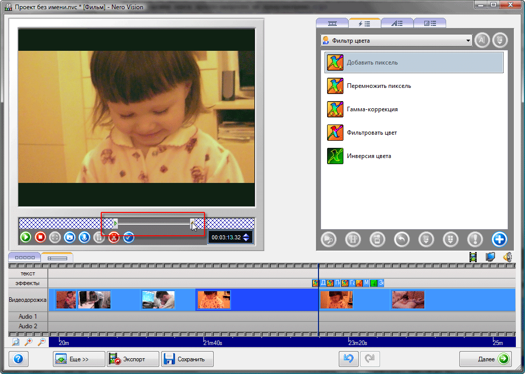 Впрочем, из описанных автомонтажёров лишь небольшая их часть могла похвастаться подобием искуственного интеллекта, выявляющим и удаляющим бракованные кадры, либо умением выстраивать не сплошной, а случайный видеоряд, да еще и под музыку. Так что Nero можно считать ещё одной вполне достойной упоминания программой для автоматического видеомонтажа со средненькими возможностями.![]()
