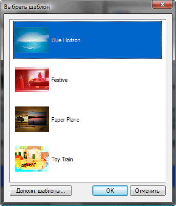 Нажатие на пиктограмму в виде обрывка киноленты запускает небольшое окно, где пользователю на выбор предлагается несколько шаблонов оформления фильма.